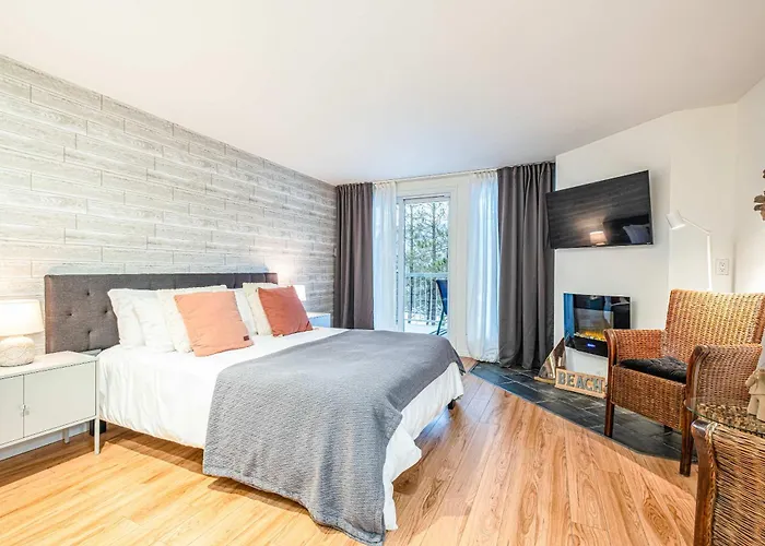 The 33 m² Studio Kona By Gestion Elite Mont-Tremblant is located in Mont-Tremblant, around a 10-minute ride from the Le Géant Golf Course, and pampers guests with a hot tub. The nearest bus stop Du Village & du Couvent is 850 metres away, while the Skyline Luge Mont Tremblant is 4.4 km away.